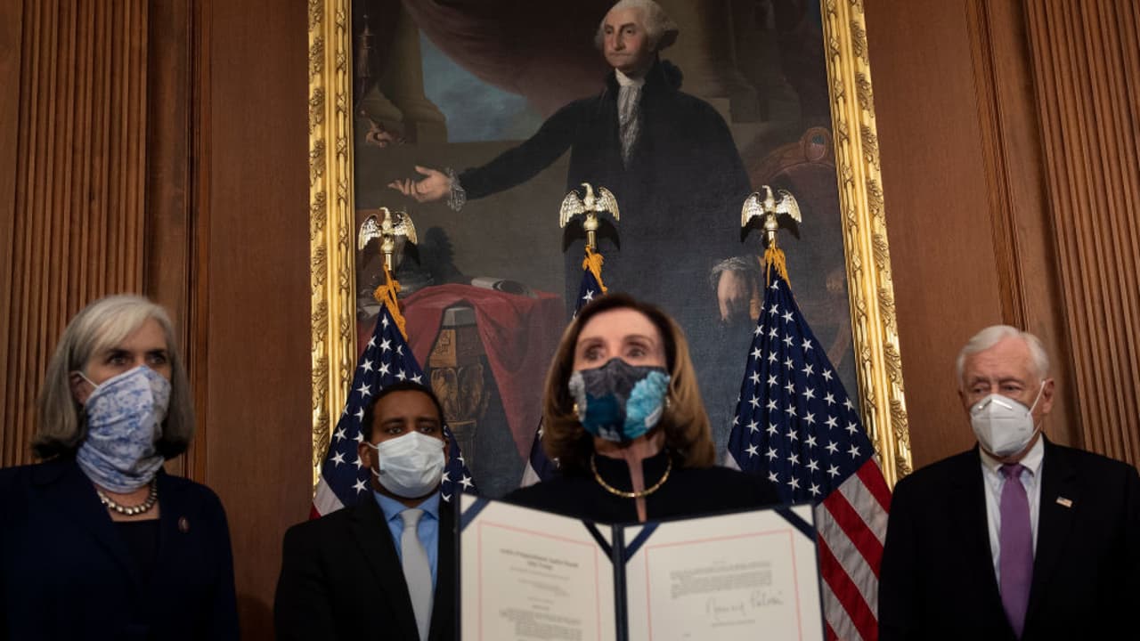 Trump se convirtió el miércoles en el único presidente en la historia de EEUU en haber sido sometido a dos ‘ impeachments’ por la Cámara de Representantes, luego de que los congresistas votaran a favor de acusarlo de haber incitado una rebelión al promover el asalto de cientos de sus simpatizantes al Capitolio de la semana pasada, un hecho -también inédito- que dejó cinco personas muertas. Así te contamos las incidencias de la sesión que decidió el segundo 'impeachment' de Trump