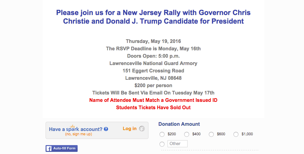 La invitación especifica que los fondos recaudados irán directamente al comité de campaña de Christie, que hasta el 31 de marzo reportó deudas aproximadas a los $400,000 y un balance de $150,000 en efectivo. Esto implica que aunque este jueves llenen la armería, que tiene capacidad para 1,000 personas, de todos modos la deuda no quedaría saldada.