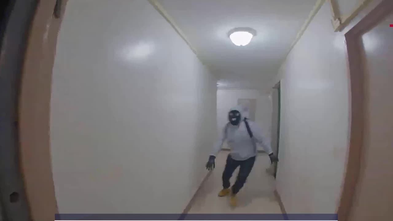 El video muestra a los sospechosos armados entrando a toda prisa en el apartamento de un hombre de 37 años.