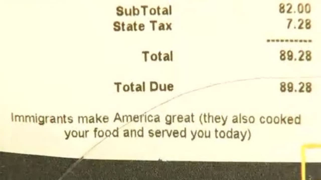 El establecimiento, llamado Kiwiana, incluyó en sus recibos esta frase en respaldo a sus trabajadores de cinco países diferentes y en rechazo a las restricciones del Gobierno de Donald Trump contra los inmigrantes.