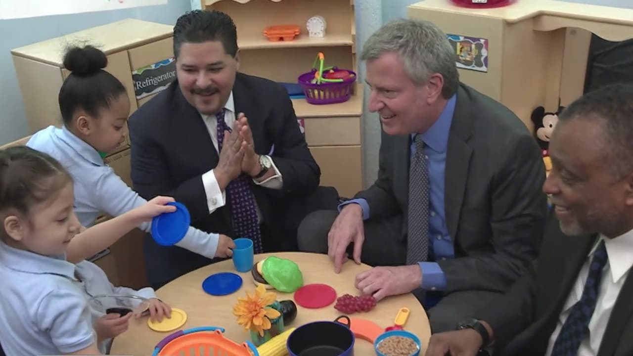 El canciller Richard Carranza, en compañía del alcalde Bill de Blasio, quiso conocer a sus estudiantes, con quien compartió clases y juegos. El sucesor de Carmen Fariña habló de su compromiso y el objetivo de luchar por la equidad.