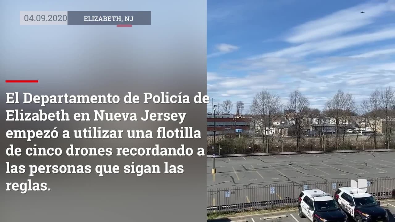 El Departamento de Policía de Elizabeth en Nueva Jersey empezó a utilizar una flotilla de cinco drones que sobrevuelan la ciudad recordando a las personas que sigan las reglas para evitar que el contagio y la propagación de coronavirus.