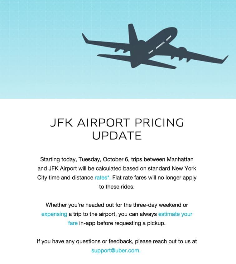 Los viajes con Uber desde el aeropuerto JFK dejarán de ser con tarifa plana, informó Pond-hop.com.