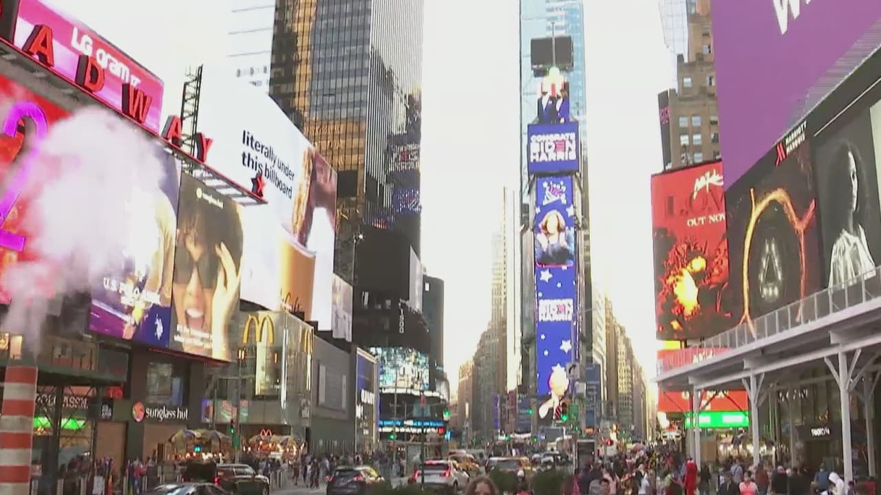 En calma, así está el ambiente este domingo en Times Square tras celebración por triunfo de Biden