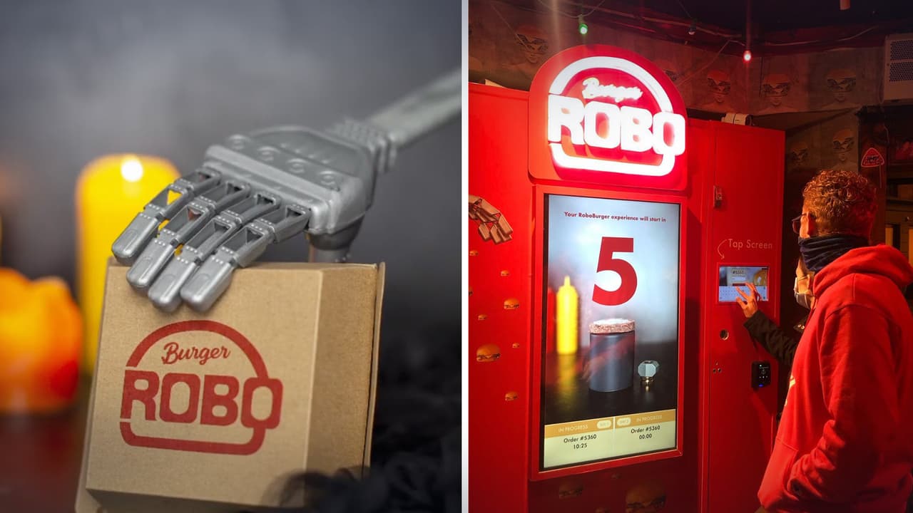 Hamburguesas con tus ingredientes favoritos, asadas a la parrilla, pero salidas de una máquina de 12 pies cuadrados, en donde el chef es un robot.