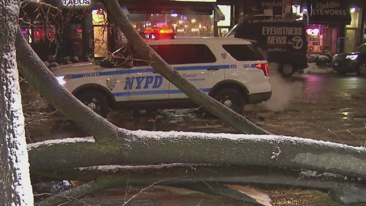 En video: Momento en que tormenta invernal derriba un árbol en Manhattan