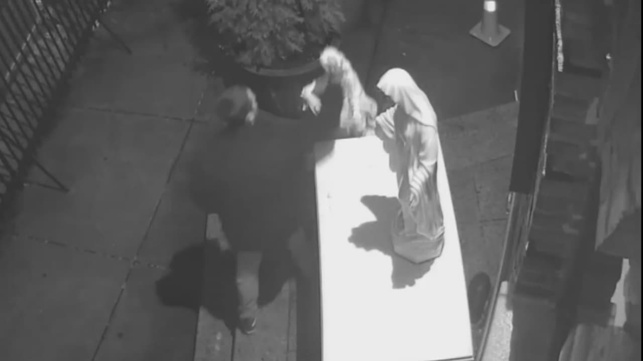En video: Sospechoso orina y destruye dos estatuas religiosas en Nueva York