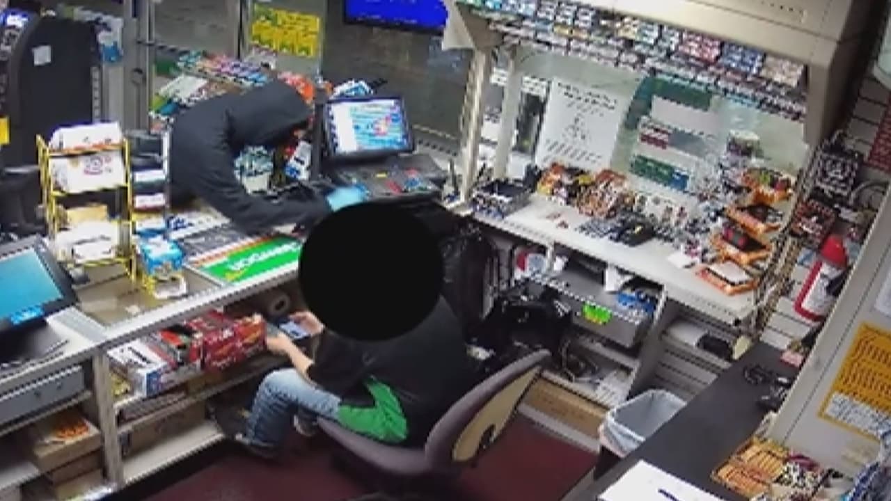 El empleado de una gasolinera en Long Island estaba distraído en su teléfono celular cuando el delincuente enmascarado se acercó a la caja registradora y se llevó el dinero. La policía publicó un video de vigilancia del momento del robo y pide a la comunidad proporcionar cualquier información sobre el caso.
