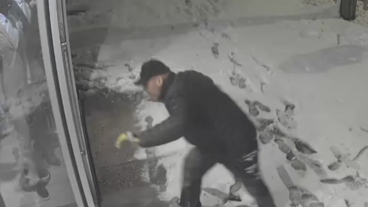 En video: Sujeto rompe los vidrios de una tienda y roba en plena tormenta de nieve