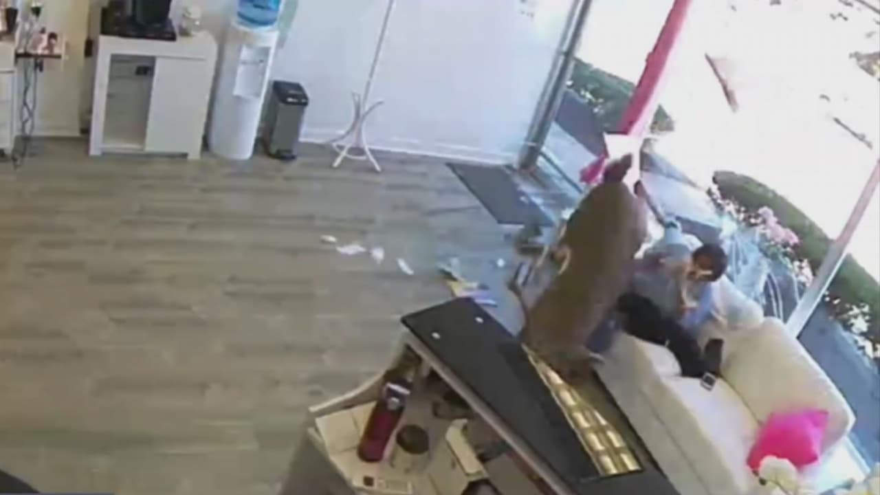 En video: Un ciervo desbocado se estrella con una peluquería de Long Island y causa pánico en el lugar