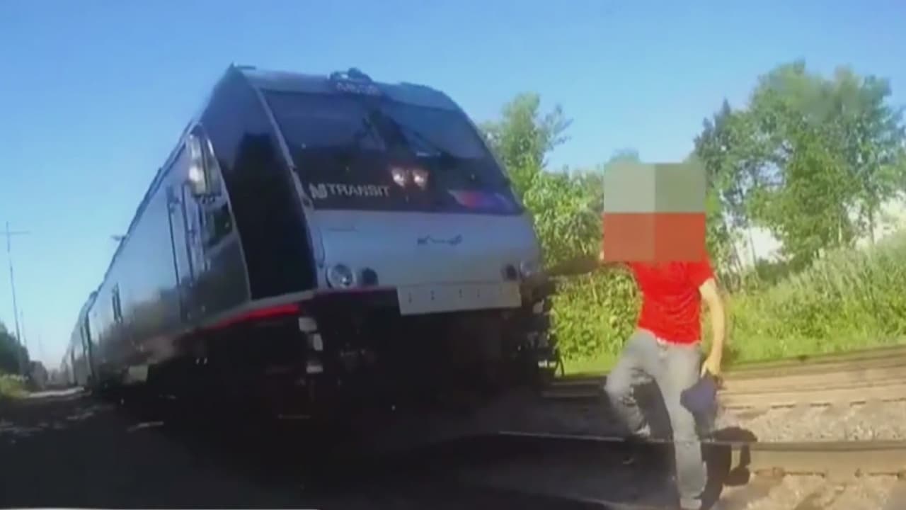 En video: Un policía salva a un hombre de morir arrollado por un tren