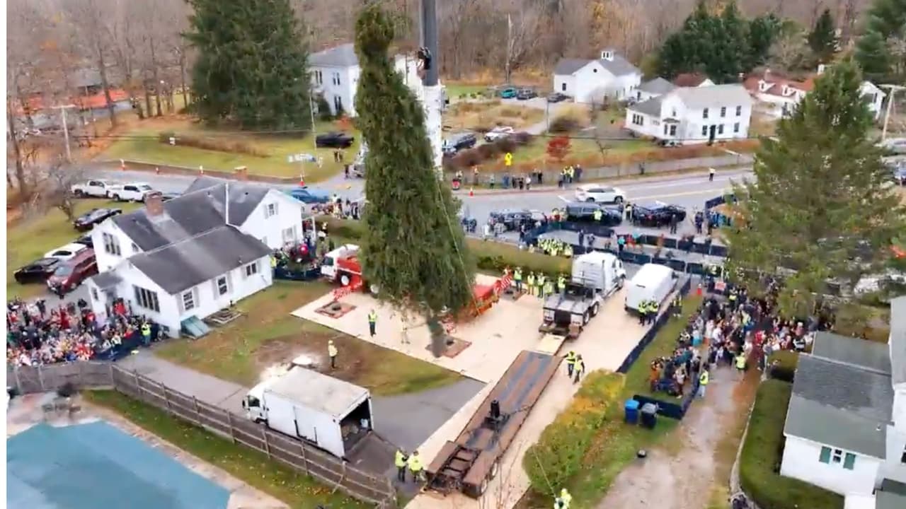 Este año, el árbol fue traído desde Massachusetts y llegó desde el 9 de noviembre a la parte baja del icónico edificio de Manhattan.