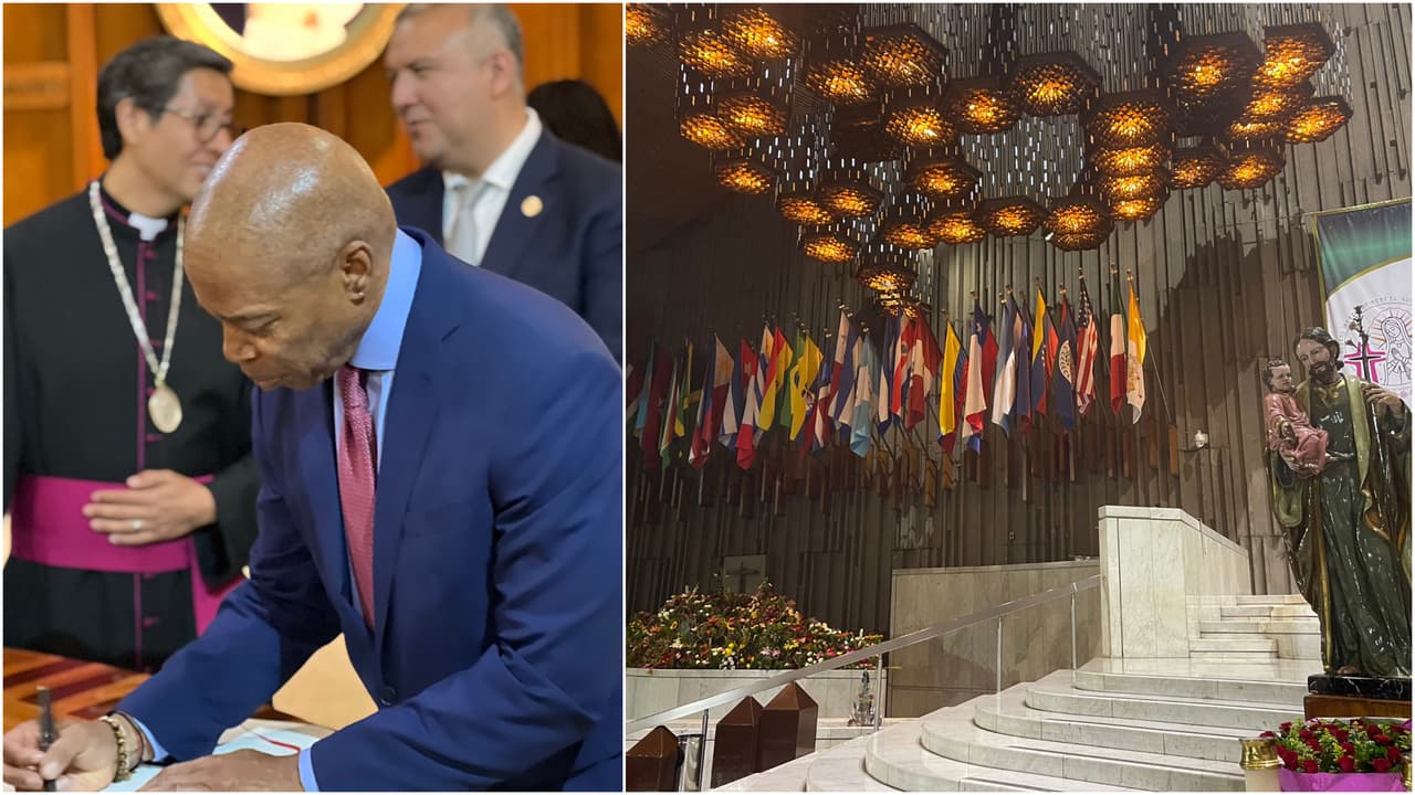 La gira por Latinoamérica del alcalde Eric Adams comenzó en México, y una de sus primeras paradas fue en la Basílica de Nuestra Señora de Guadalupe, ubicada en la capital.