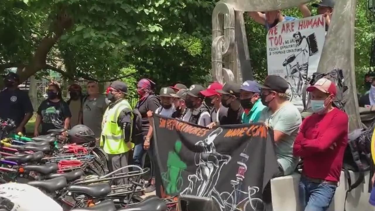 “Es injusto como nos tratan”: repartidores de comida en Nueva York protestan para exigir mejores condiciones laborales