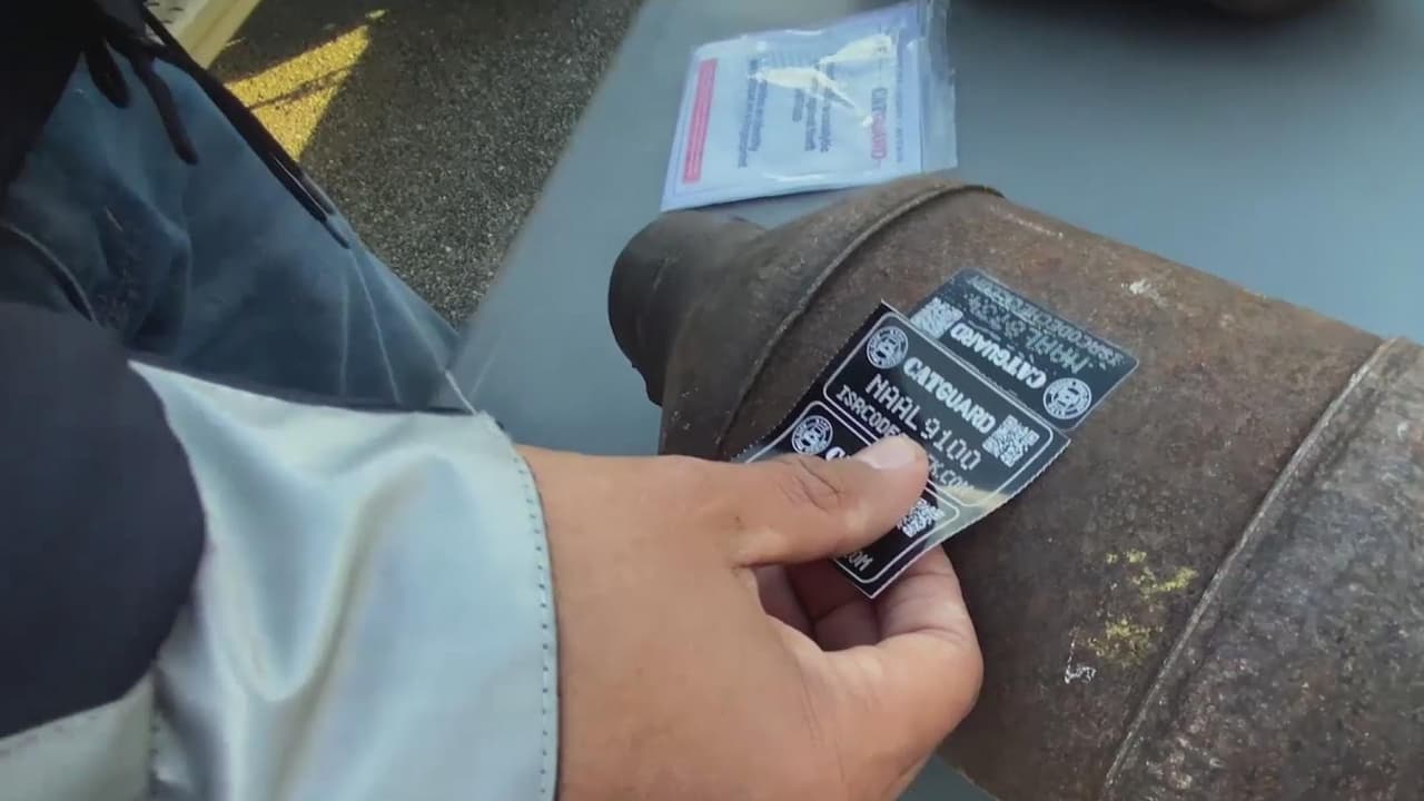 El robo de convertidores catalíticos ha aumentado significativamente en la ciudad de Nueva York. Para combatir esta modalidad delictiva, el Departamento de Policía está utilizando una nueva estrategia para identificar estos componentes que se venden en el mercado ilegal hasta por 900 dólares. "Son stickers que se le ponen y, cuando el carro se calienta, estos números se graban en el catalítico. Son como un número de serie", explica un detective.