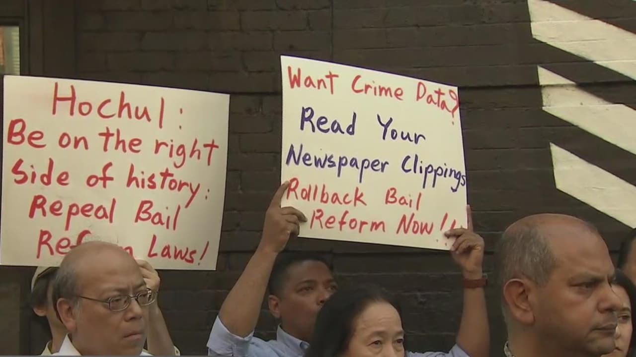 Los manifestantes aseguran que la violencia y el crimen en las calles de la Gran Manzana aumentan cada vez más porque las autoridades siguen liberando a los delincuentes reincidentes. "El elemento criminal tiene más derechos que el ciudadano que quiere trabajar y hacer las cosas bien", asegura sobre la ley estatal de fianzas uno de los participantes de la protesta.