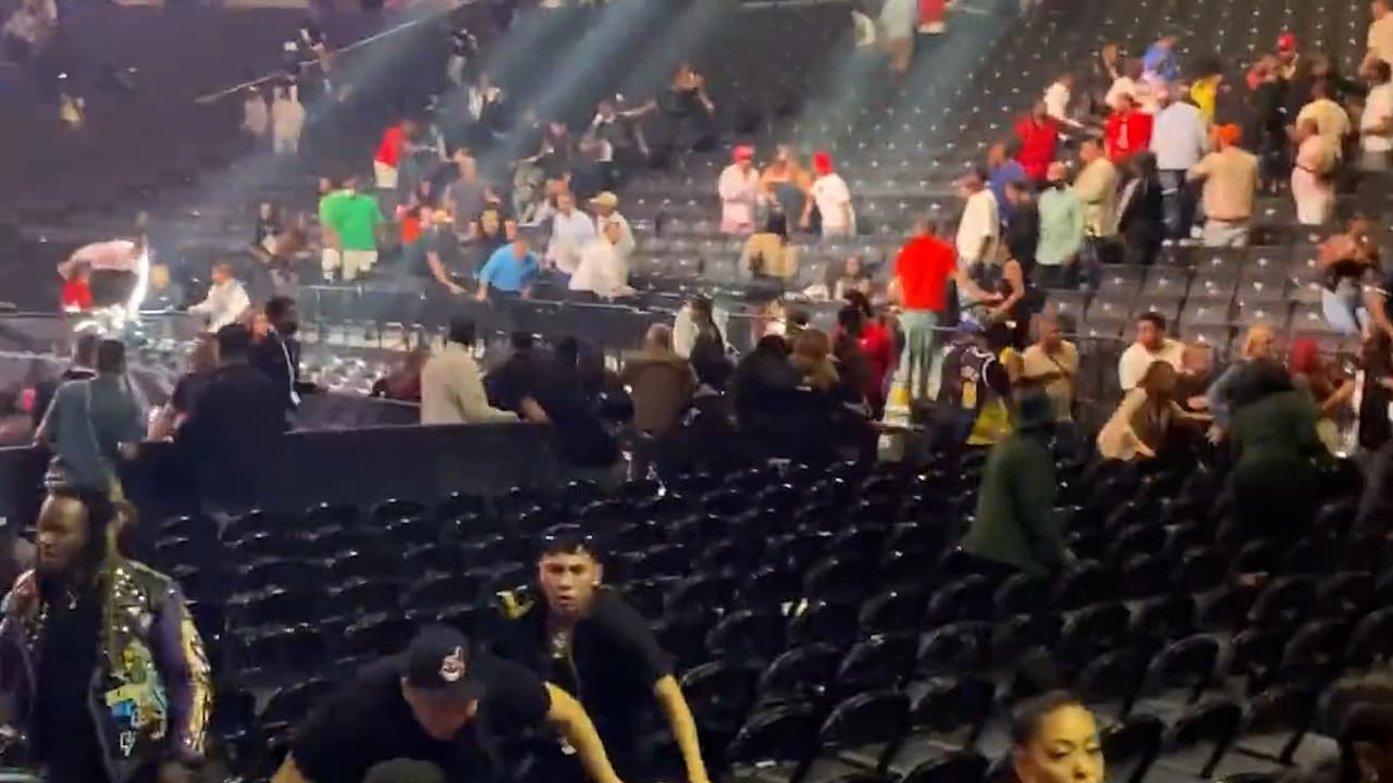 Un video publicado en twitter por Ryan Songalia un reportero de boxeo, muestra cómo la multitud vivió momentos de miedo pensando que había un pistolero.