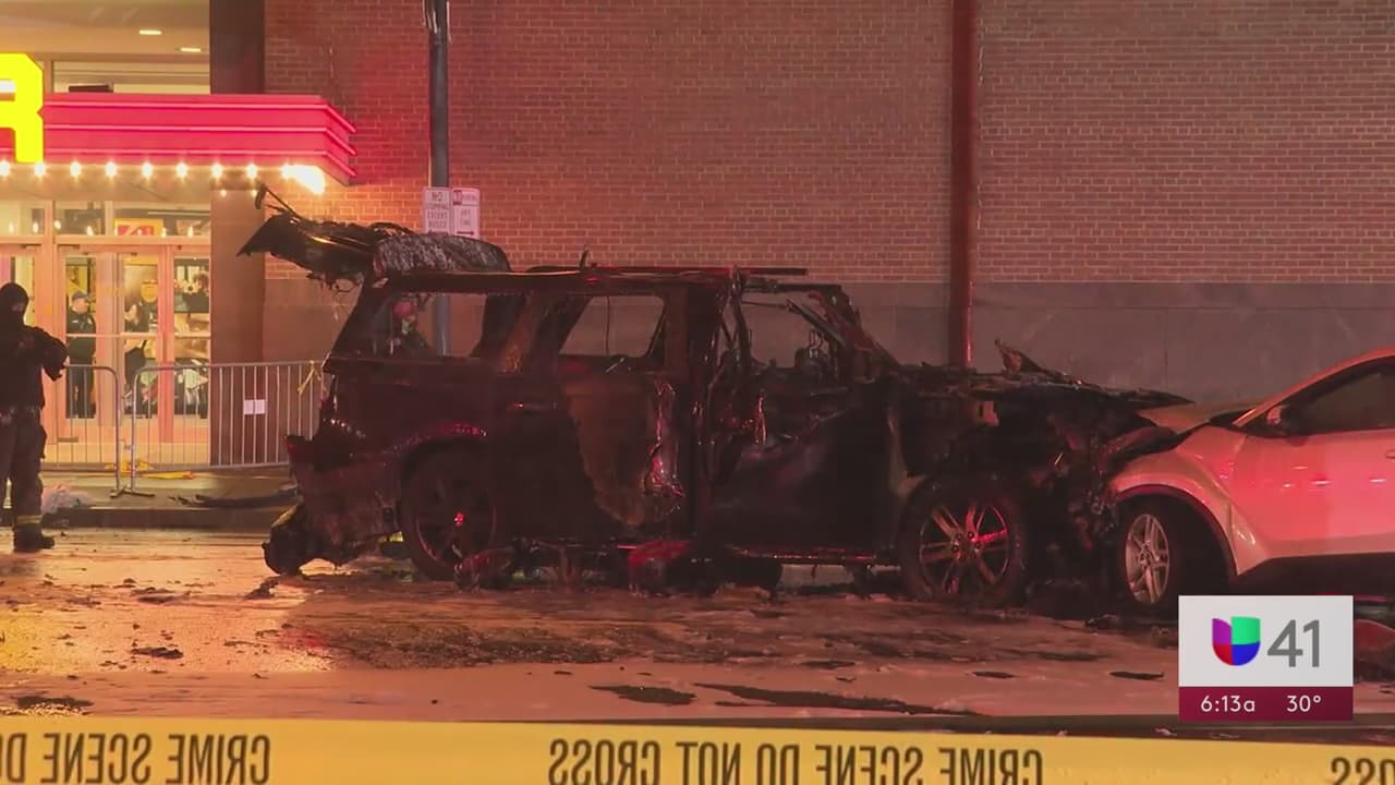 Según trascendió una vez que los cuerpos de auxilio controlaron el incendio, hallaron una docena de botes de gasolina dentro de la Ford Expedition.