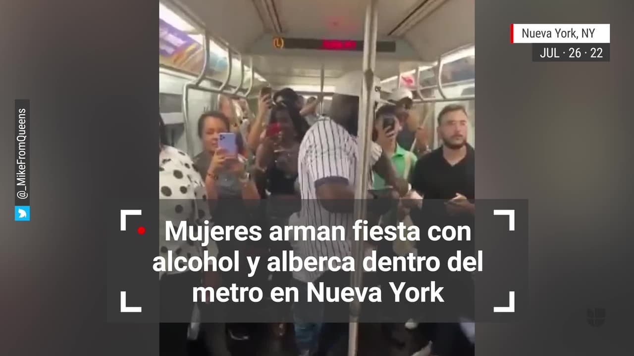 Un grupo de mujeres inició una fiesta con alcohol, trajes de baño y albercas inflables dentro de un vagón del subway en Nueva York, las autoridades no han emitido comentarios hasta el momento.