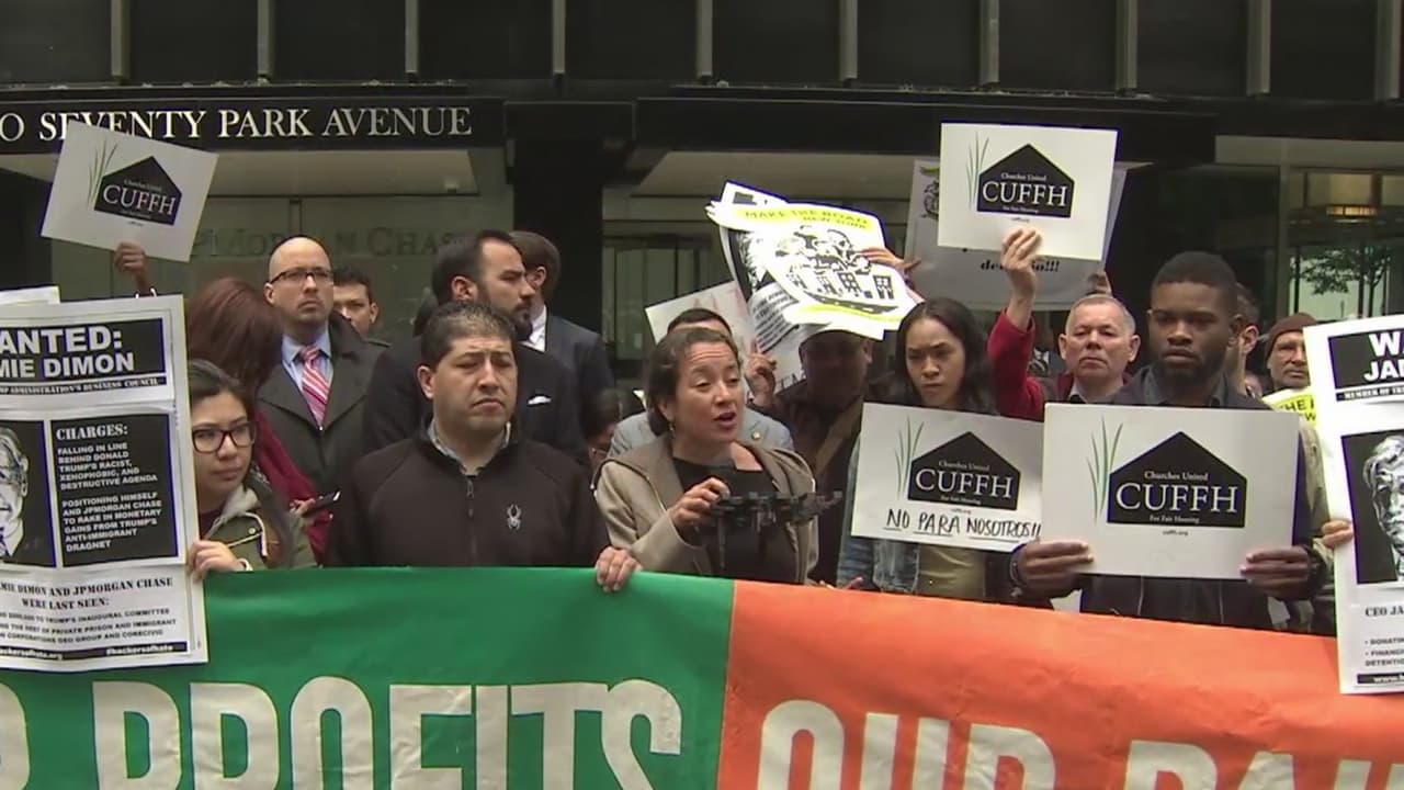 Los manifestantes se reunieron en Manhattan para alzar la voz contra las compañías que, según ellos, se aprovechan y benefician de las políticas migratorias del presidente.