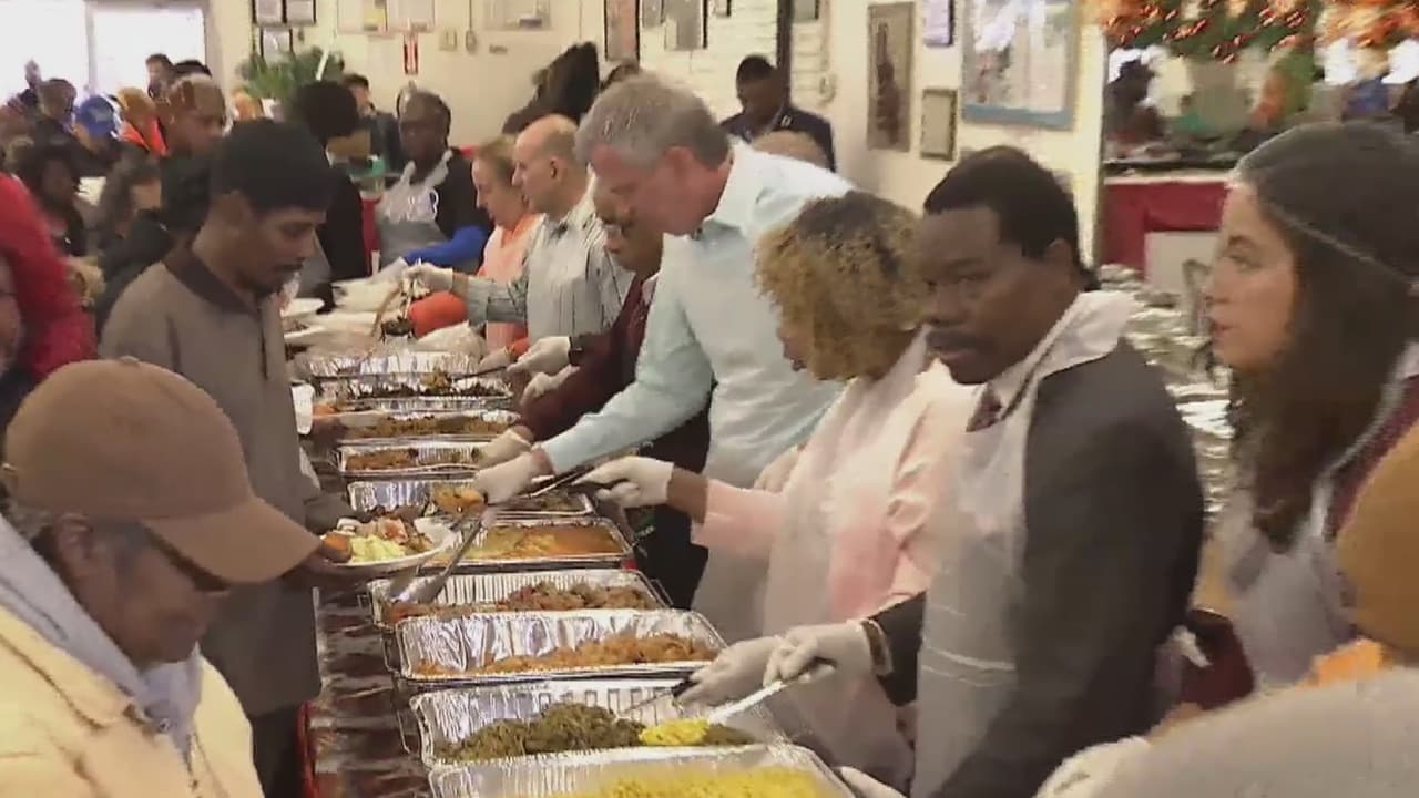 Políticos locales se pusieron el delantal para servir la cena de Acción de Gracias a cientos de personas sin hogar y de la tercera edad en Harlem. El alcalde Bill de Blasio y el concejal Ydanis Rodríguez hicieron parte del encuentro.