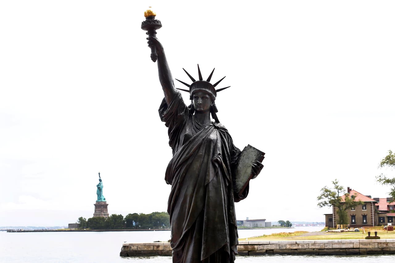 La réplica permanecerá en Ellis Island, en el puerto de Nueva York.
