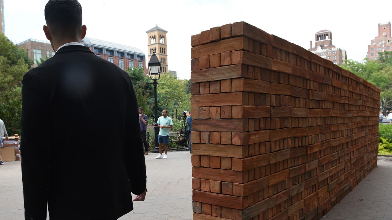 Hispanos en Manhattan derrumban un muro simbólico a modo de protesta por las políticas de Trump