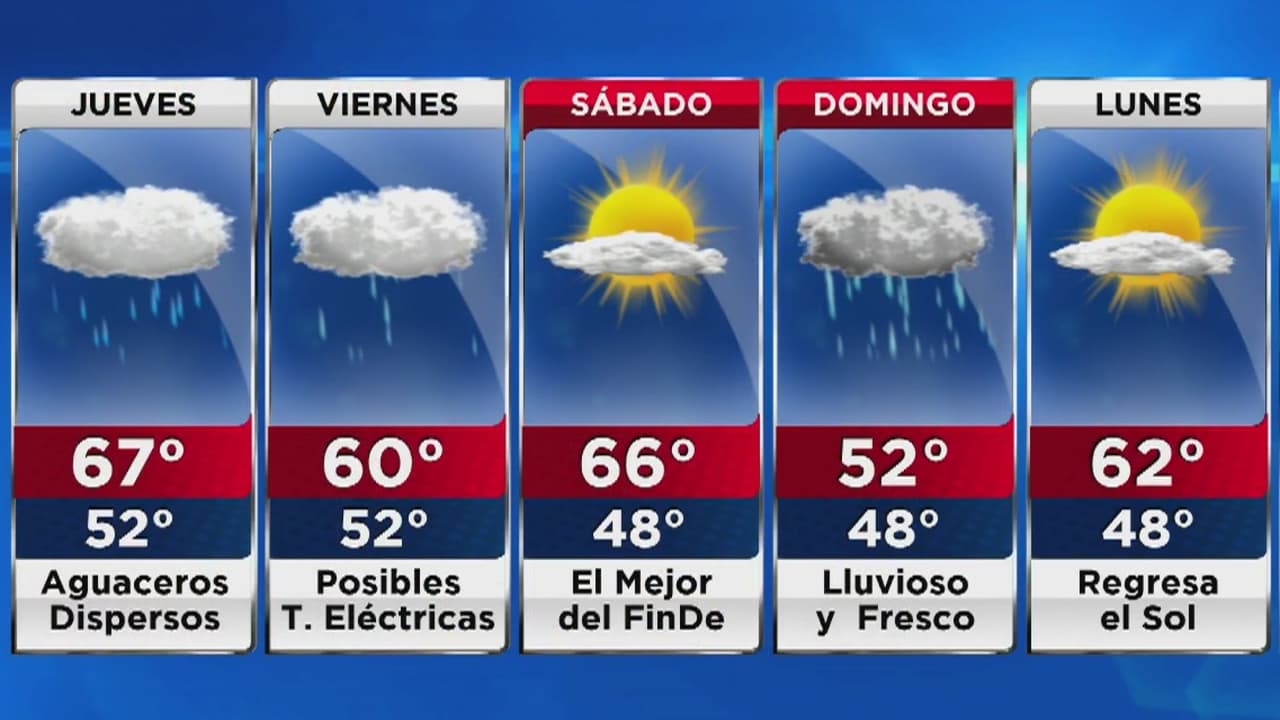 Se esperan lluvias ligeras en algunos momentos del día, pero la temperatura estará un poco más alta que el miércoles. La máxima llegará a 67 grados, con sensaciones térmicas alrededor de los 70 grados.