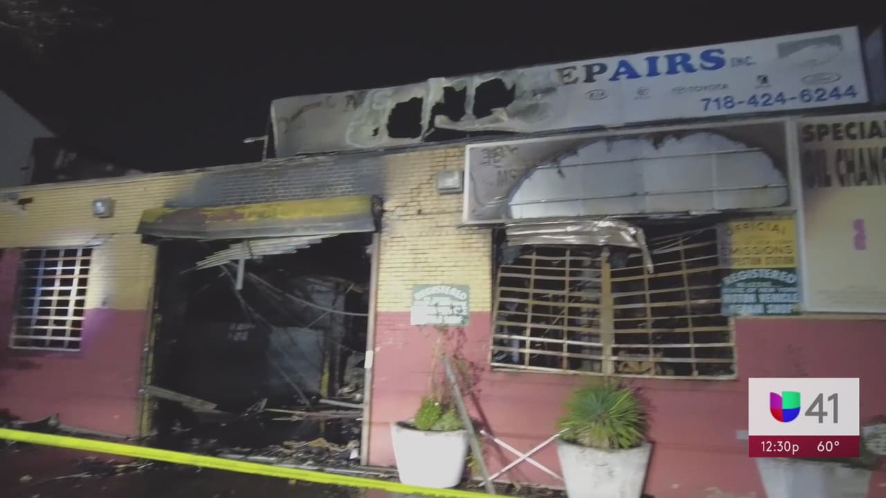 Incendio en un taller mecánico ubicado en la avenida 34 de Woodside, Queens, deja un bombero lesionado.