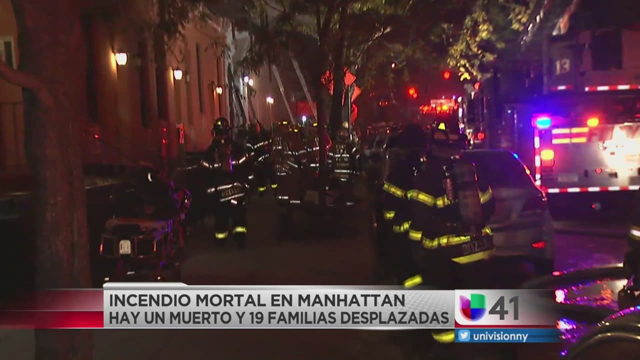 Una persona murió y 19 familias fueron desplazadas tras un voraz incendio en un complejo en Manhattan, el fuego inició en un apartamento en el tercer piso.