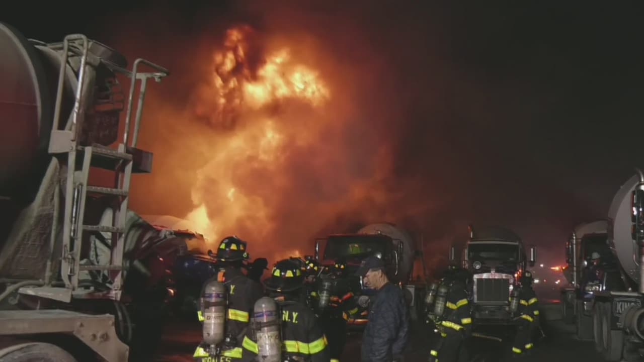 Investigan si el incendio que consumió 16 camiones de cemento en Brooklyn fue provocado