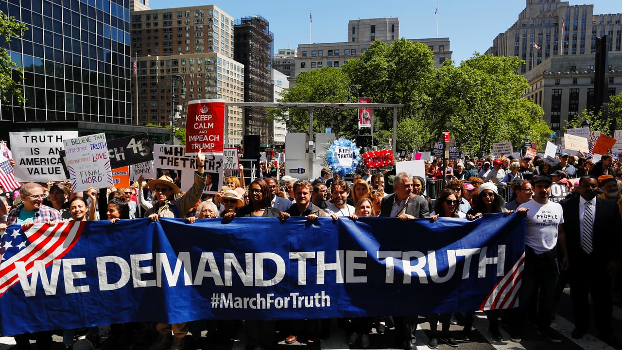 Investigar los actos de Donald Trump, lo que exigieron en la 'Marcha por la Verdad' en Nueva York
