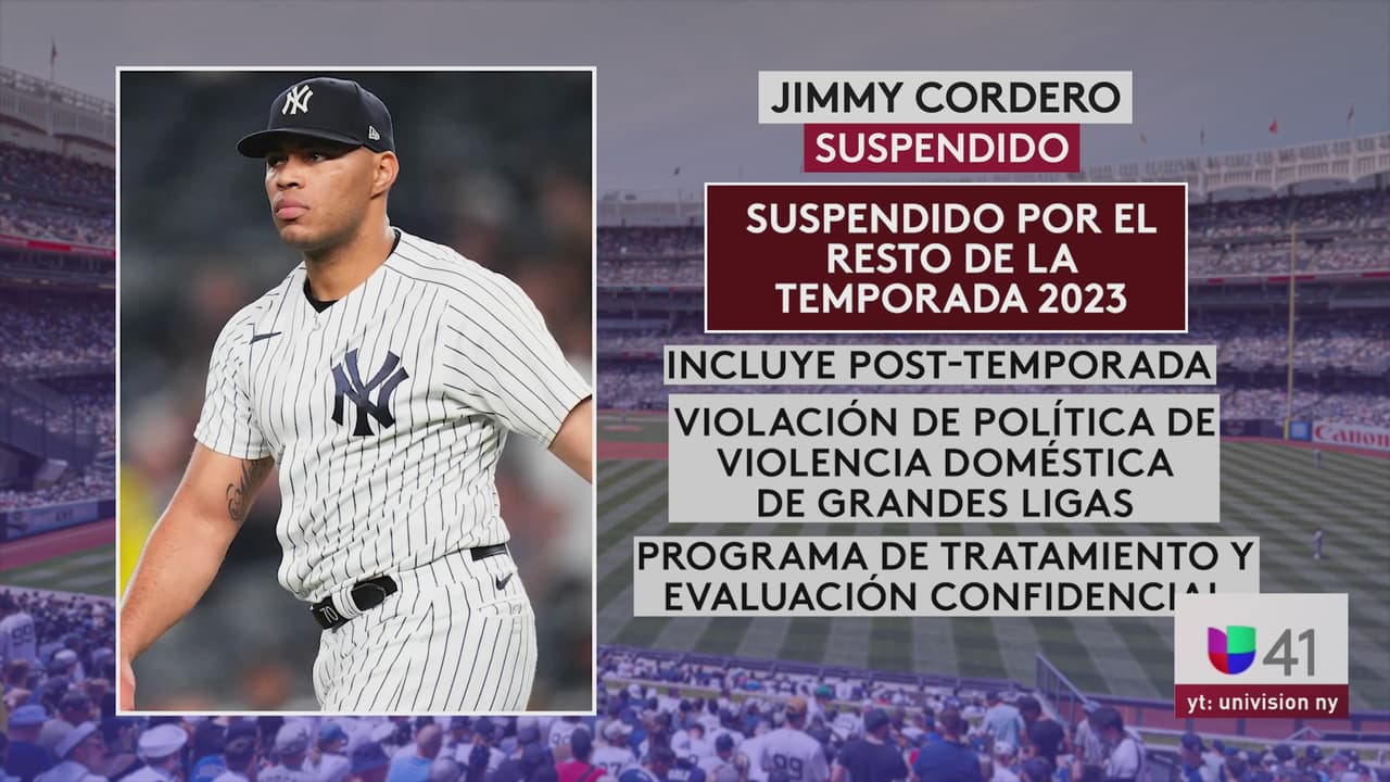 Jimmy Cordero, lanzador dominicano de los Yankees de Nueva York, fue suspendido por el resto de la temporada tras haber quebrantado el reglamento de violencia doméstica de las Grandes Ligas.