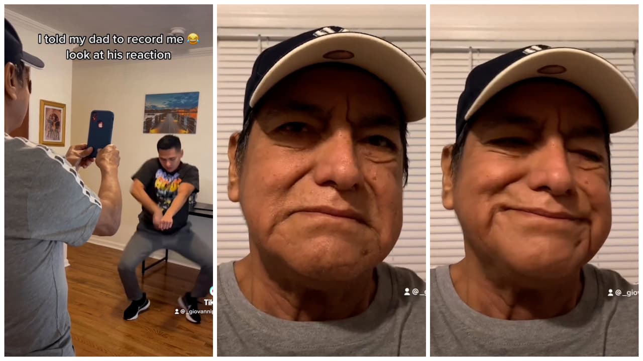 El video del joven subido a la cuenta _GiovanniPaolo7 muestra el momento en que realiza el baile y luego exhibe las reacciones de su papá, que hace algunas muecas que sugieren desaprobación.