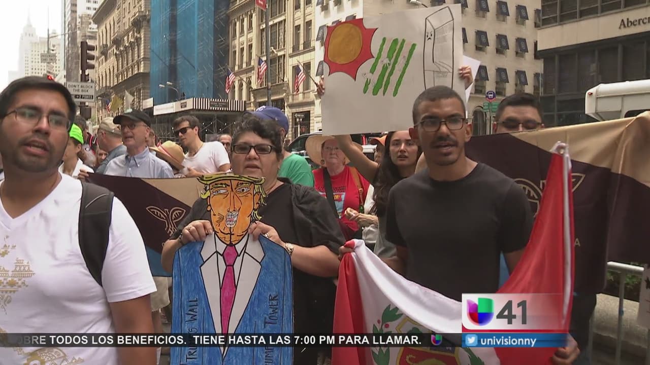 Mientras Donald Trump se reunía con el presidente Peña Nieto, un grupo de manifestantes expresaron su inconformidad por las políticas migratorias del magnate norteamericano.