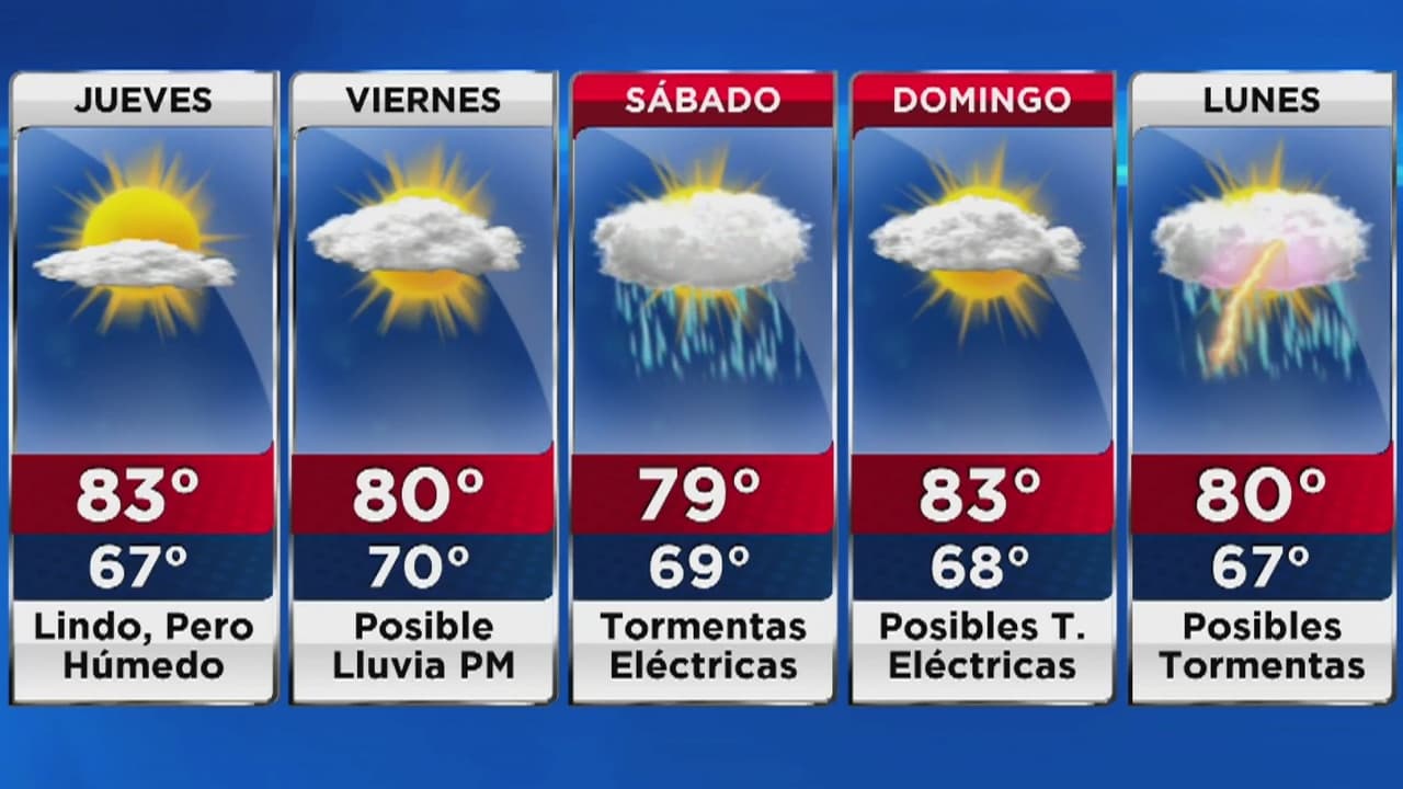 La sensación de humedad estará presente durante la mayor parte del día, pero sin probabilidad de lluvia. La máxima temperatura será de 83 grados. Las condiciones del tiempo comenzarán a cambiar a partir del viernes.