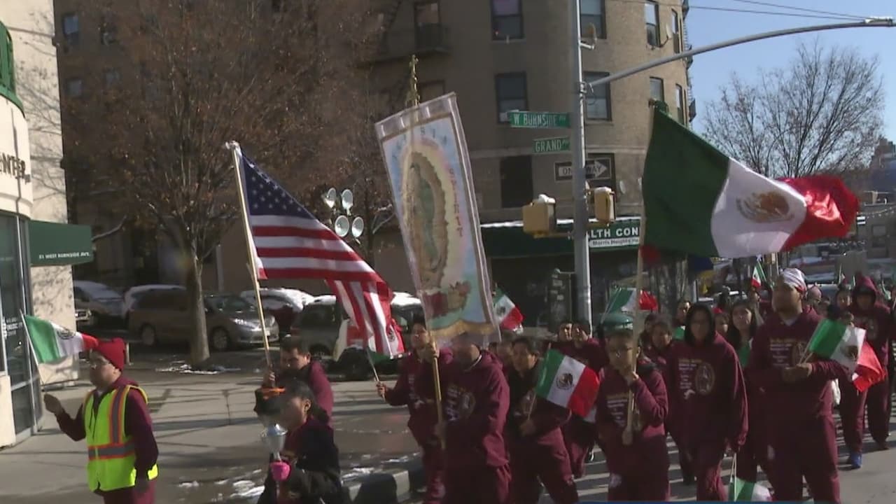 Decenas de personas marcharon en El Bronx como parte de la celebración del día de nuestra Señora de Guadalupe, que será el próximo martes 12 de diciembre. El lunes se cantarán las mañanitas a la Virgen en la Catedral de San Patricio.