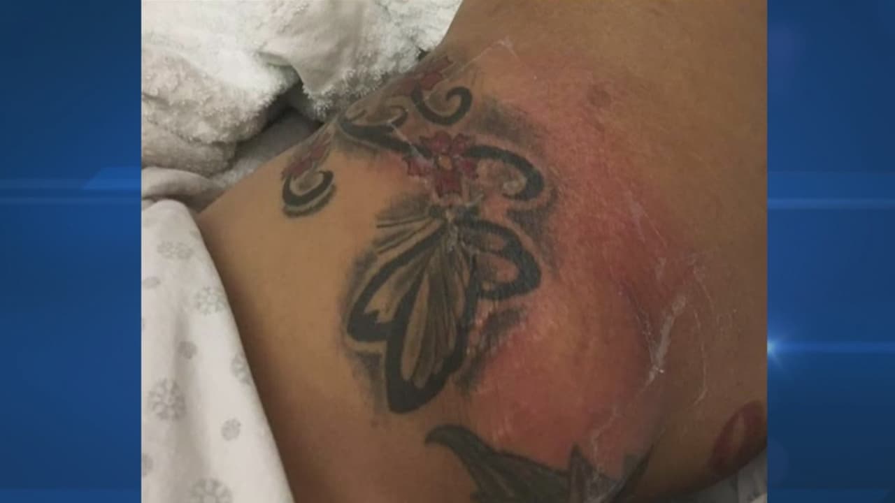 La víctima, de 26 años de edad y madre de dos hijos, cuenta que le pagó 4,000 dólares a una mujer para que le inyectara un producto traído del exterior. Las inyecciones le provocaron una grave infección que la tuvo hospitalizada por casi un mes.
