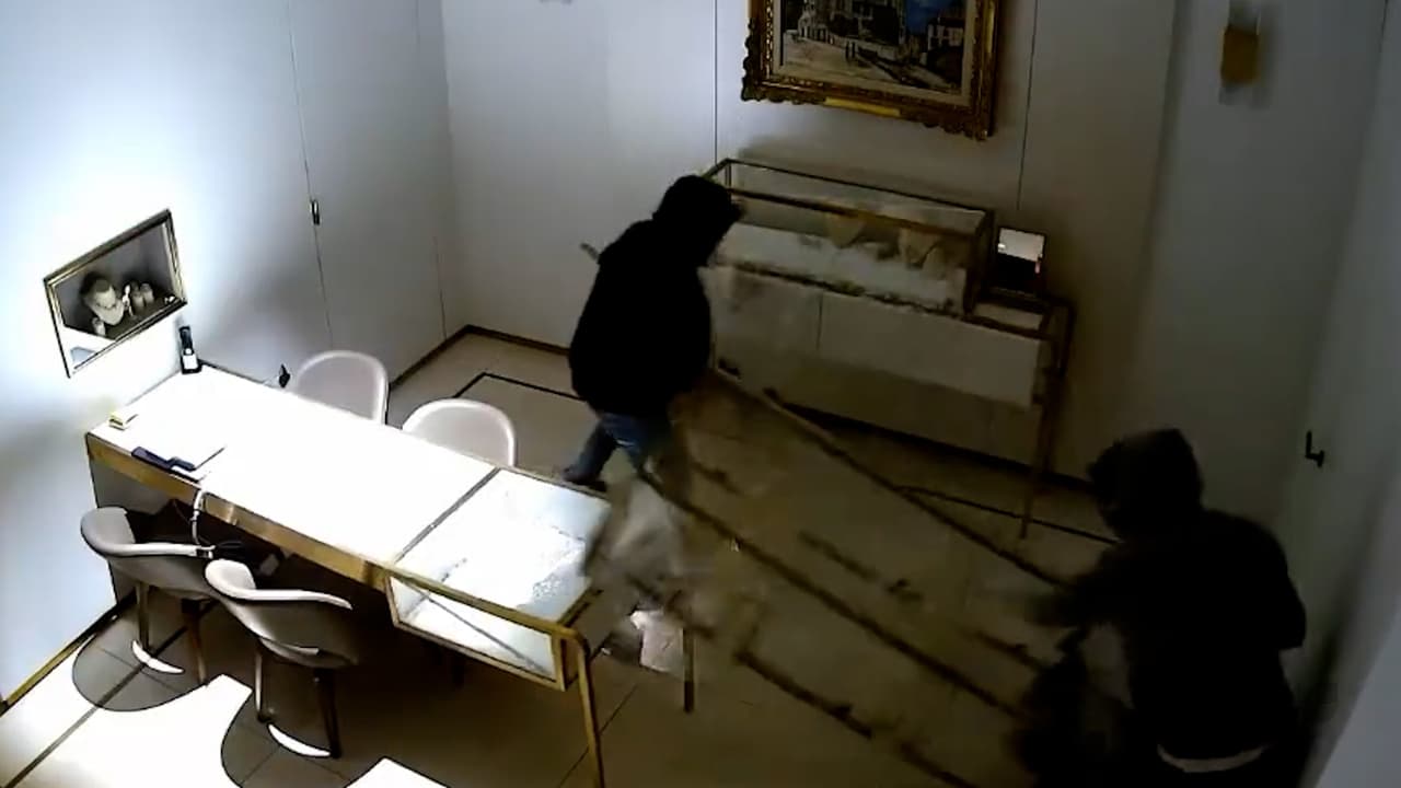 Armado con un marrón de hierro, a eso de las 3:30 de la mañana, uno de los ladrones golpeó el vidrio de la puerta principal de la joyería y así lograron acceso.
