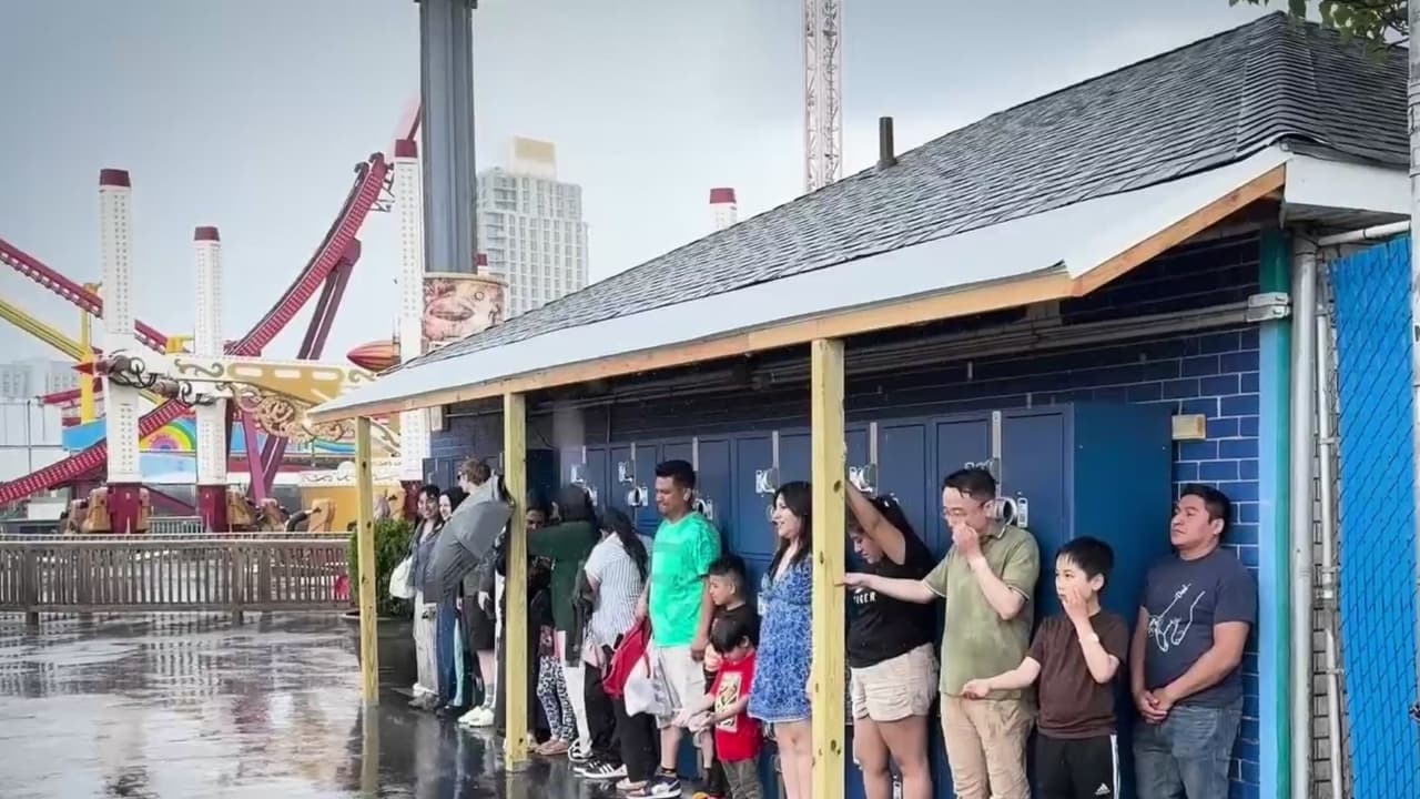 Pasadas las 6:00 de la tarde del lunes, una bandera roja yacía en la playa de Coney Island, que fue cerrada temprano debido al mal tiempo. Incluso, los salvavidas se marcharon. Una vez que escampó, los visitantes continuaron disfrutaron de las atracciones en el Memorial Day.