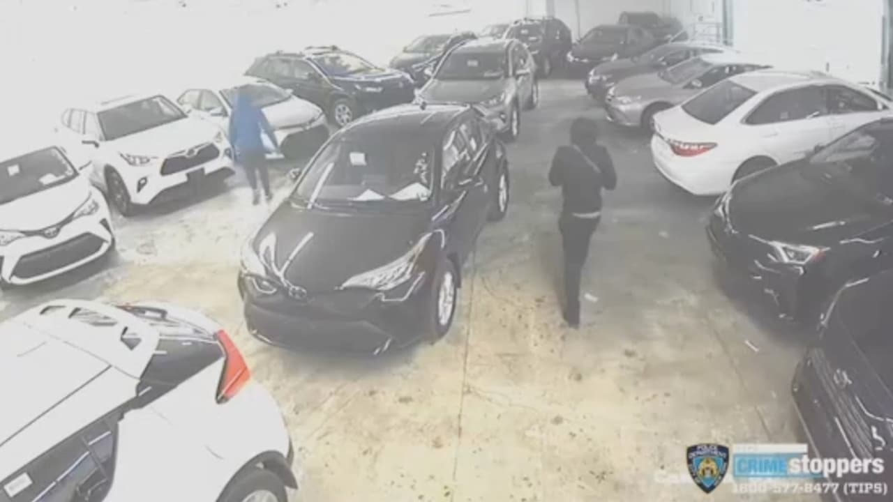 El robo, que quedó captado en video, ocurrió la madrugada del miércoles en las instalaciones de almacenamiento de Toyota, ubicadas en el 3220 de la avenida Jerome, mientras la ciudad de Nueva York estaba bajo toque de queda.