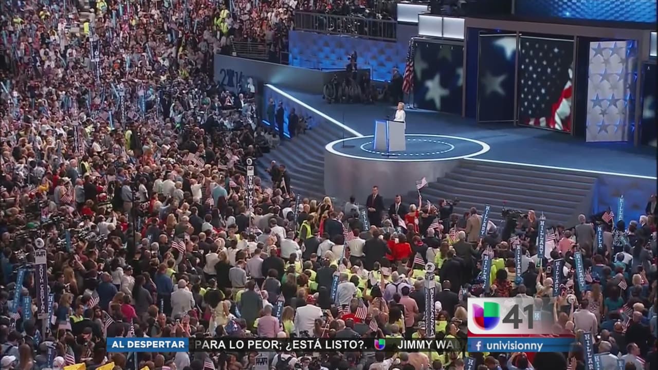 En el cierre de la Convención Nacional Demócrata Hillary Clinton aceptó la nominación del partido y fue ovacionada durante su discurso.