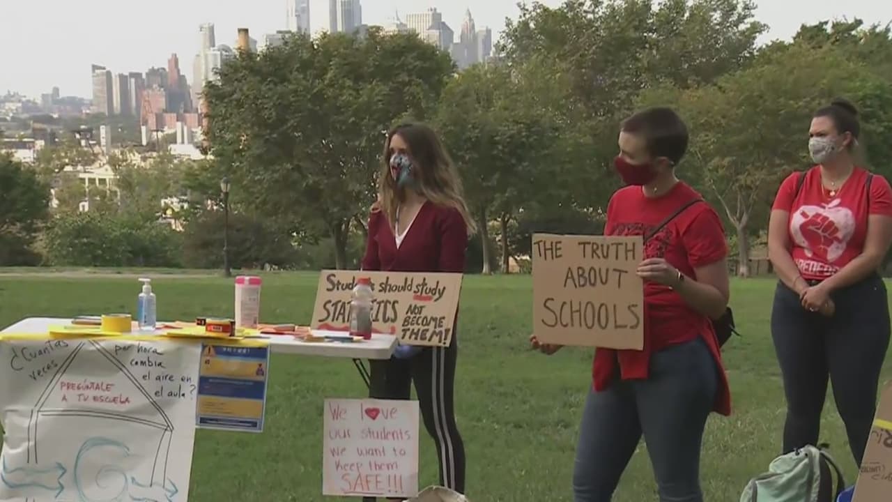 Maestros de Nueva York protestan por los inconvenientes que tienen para dar clases remotas