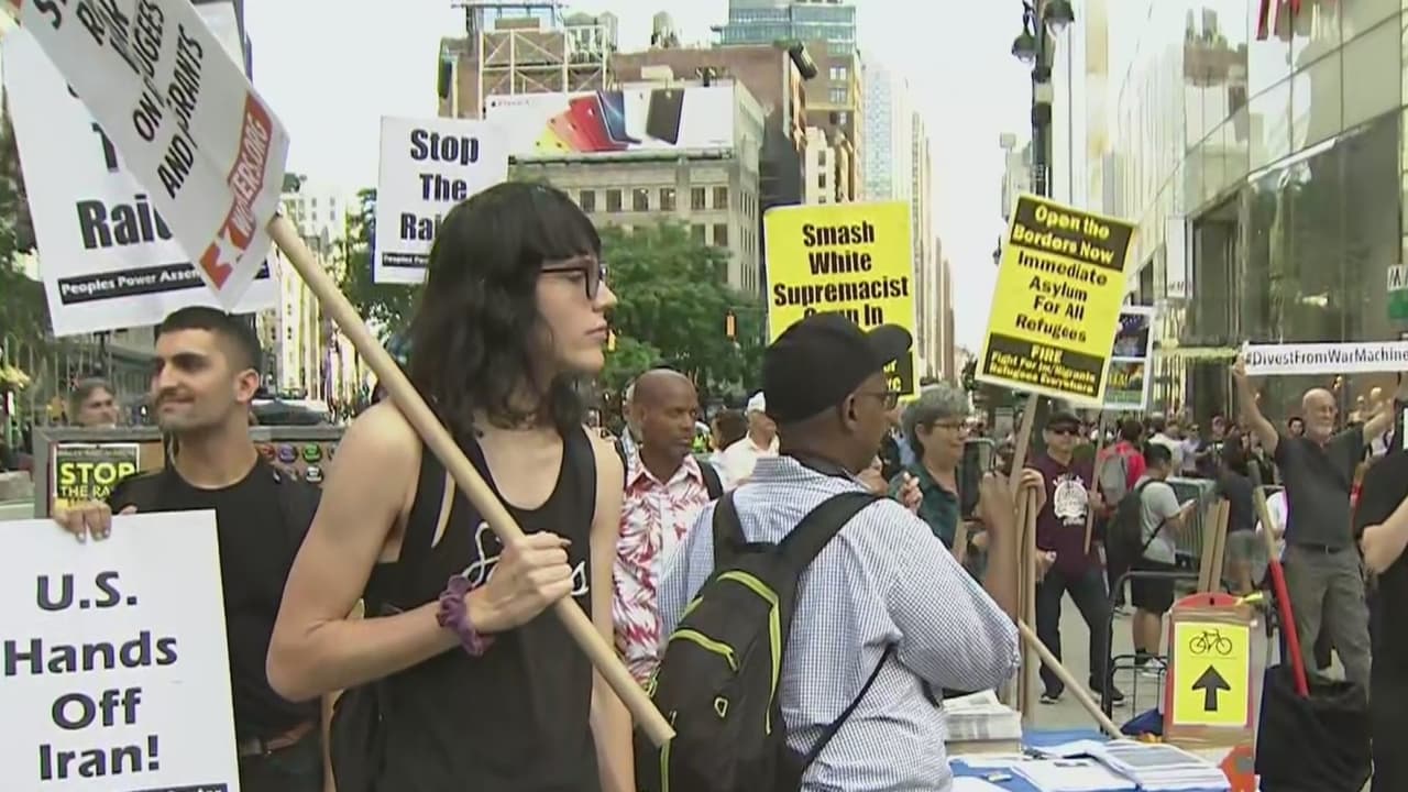 Manifestantes en Manhattan protestan en contra de operativos de ICE y se quejan de Trump por tuits que consideran racistas