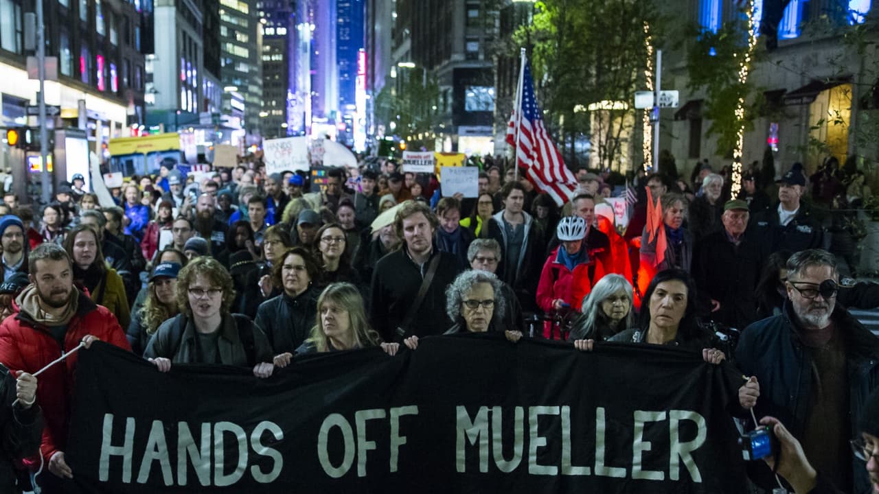 Manifestantes en Nueva York realizan marcha en apoyo al fiscal especial Robert Mueller