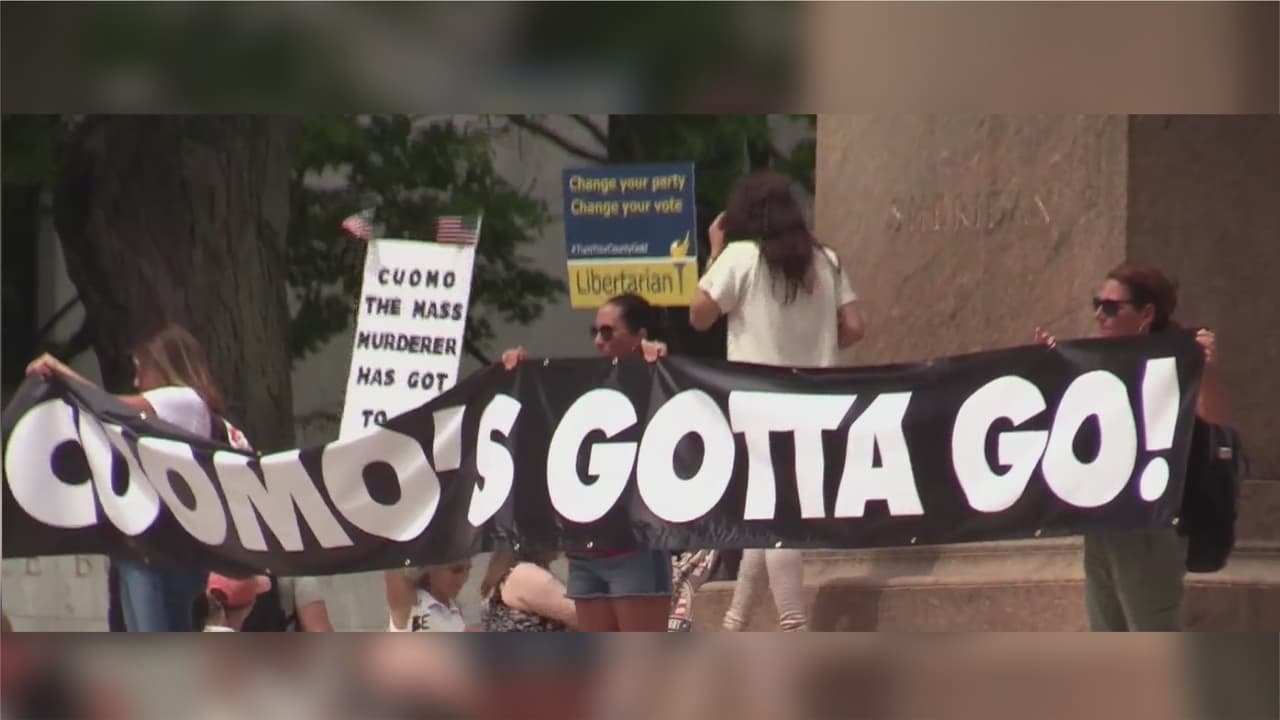 Manifestantes piden la renuncia del gobernador de Nueva York por su gestión ante la crisis por el coronavirus