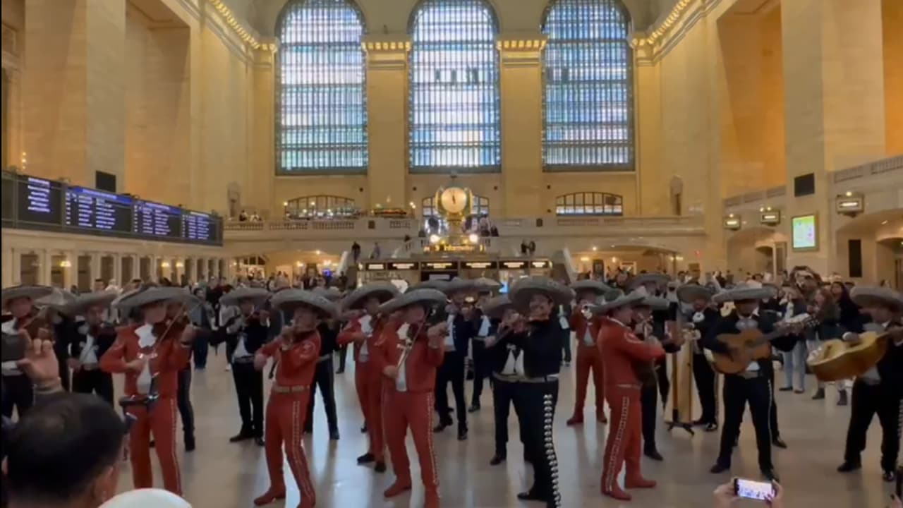 Mariachi Vargas de Tecalitlán sorprende en la estación Grand Central de Nueva York