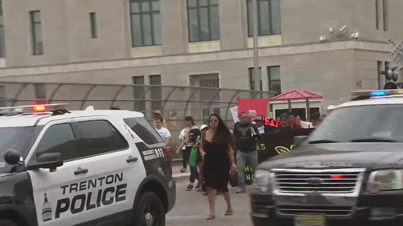 Escoltados por la policía, más de un centenar de personas salieron a marchar en las calles de Trenton para exigir que se apruebe un proyecto le ley que le permitiría a los inmigrantes indocumentados tener este documento.