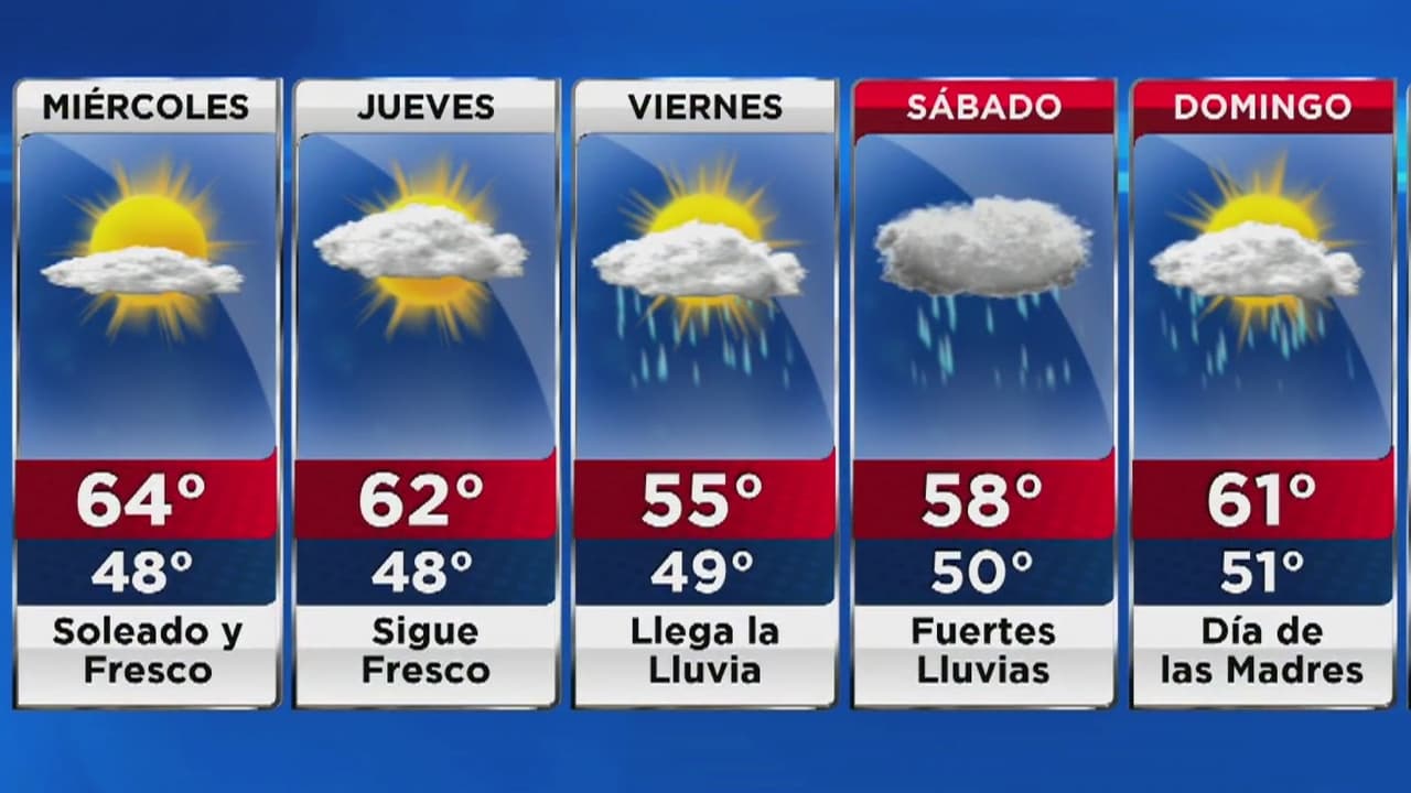 Aunque las temperaturas siguen estando por debajo de los niveles normales para esta época del año, hoy suben un poco y podría ser el mejor día de la semana. La máxima para este viernes será de 64 grados, y en la noche bajará hasta los 48 grados.