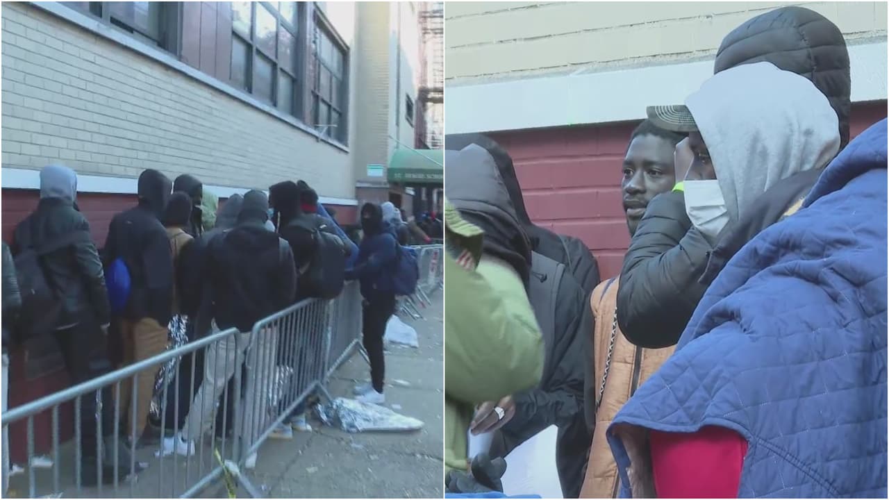 Migrantes hacen largas filas en el frío en East Village para reinscribirse en sistema de refugios